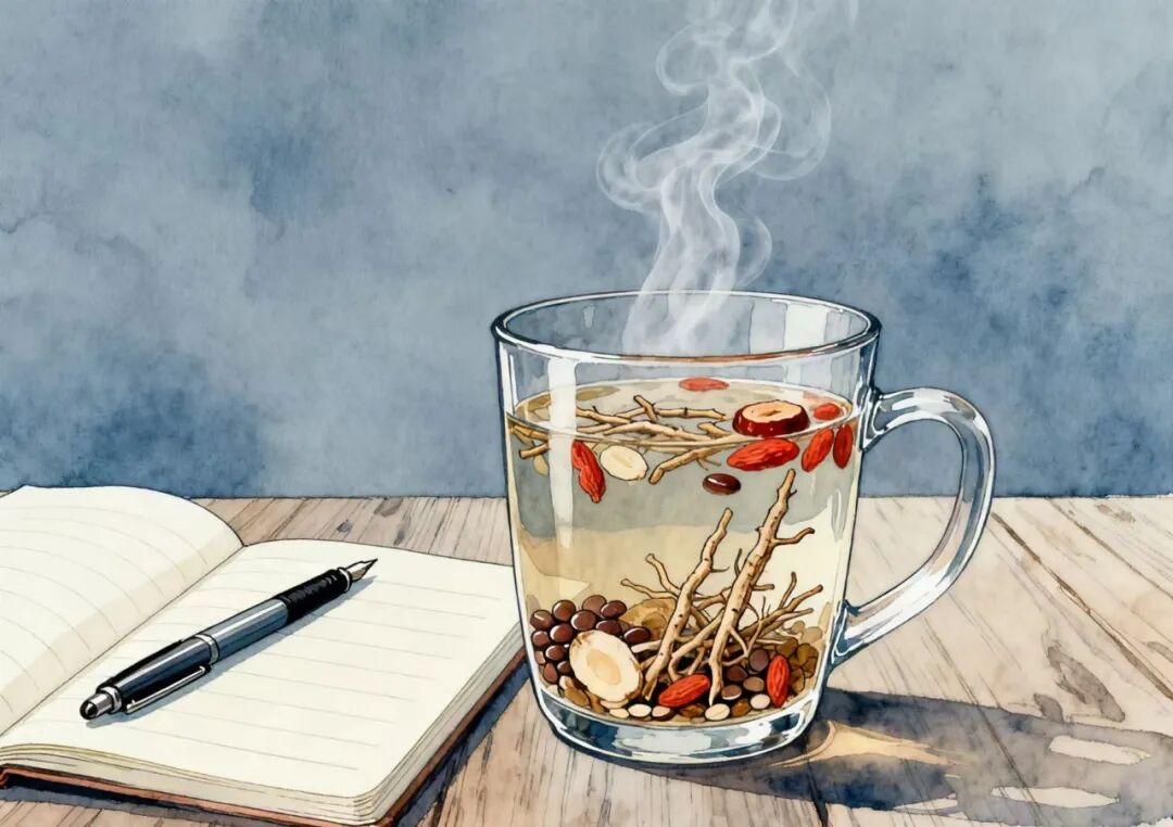 将3味饮片放入保温杯,沸水冲泡20分钟,焖泡时可以把炒酸枣仁轻轻敲碎,有效成分更容易析出,喝起来带着淡淡的草木香,比苦涩的中药汤剂温和太多。